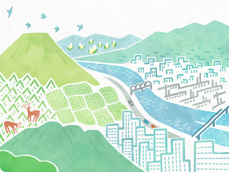快適な生活環境を創造するため、水や大気環境を保全し、騒音・振動及び悪臭を防止するとともに、放射性物質への対応などを紹介
