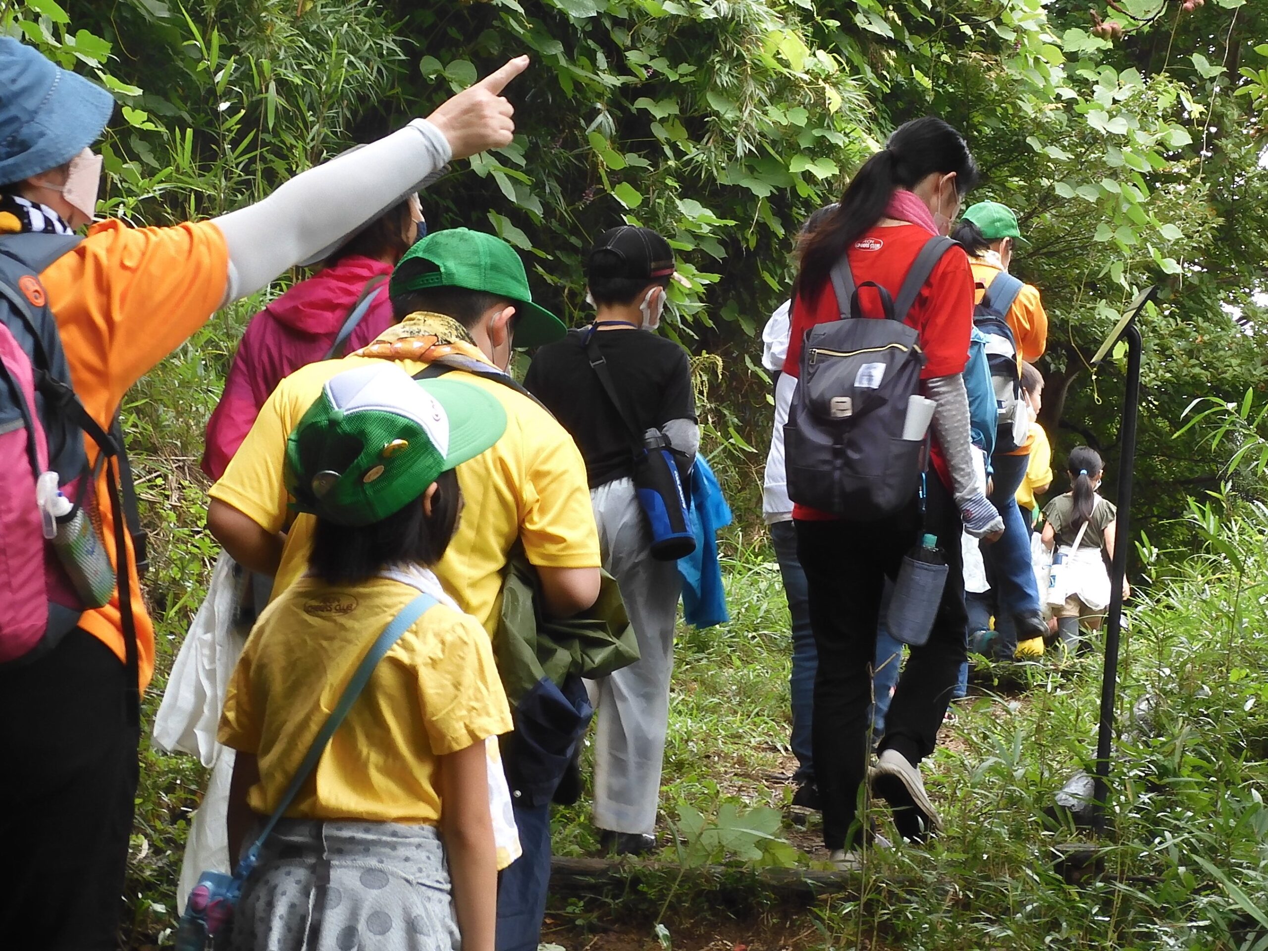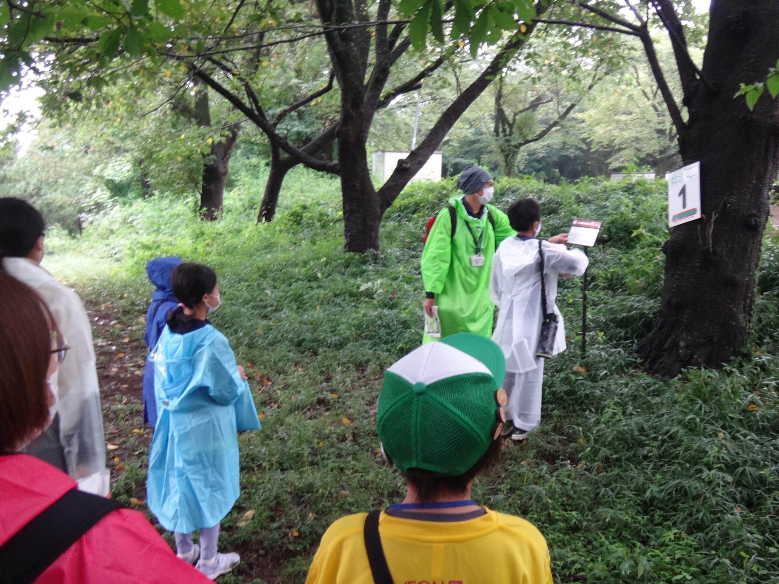 午前中はグリーンアドベンチャーを実施しました。班ごとに森の木の説明文を読んだり森の空気を味わったり聞こえてくる自然の音を楽しんだりしました。