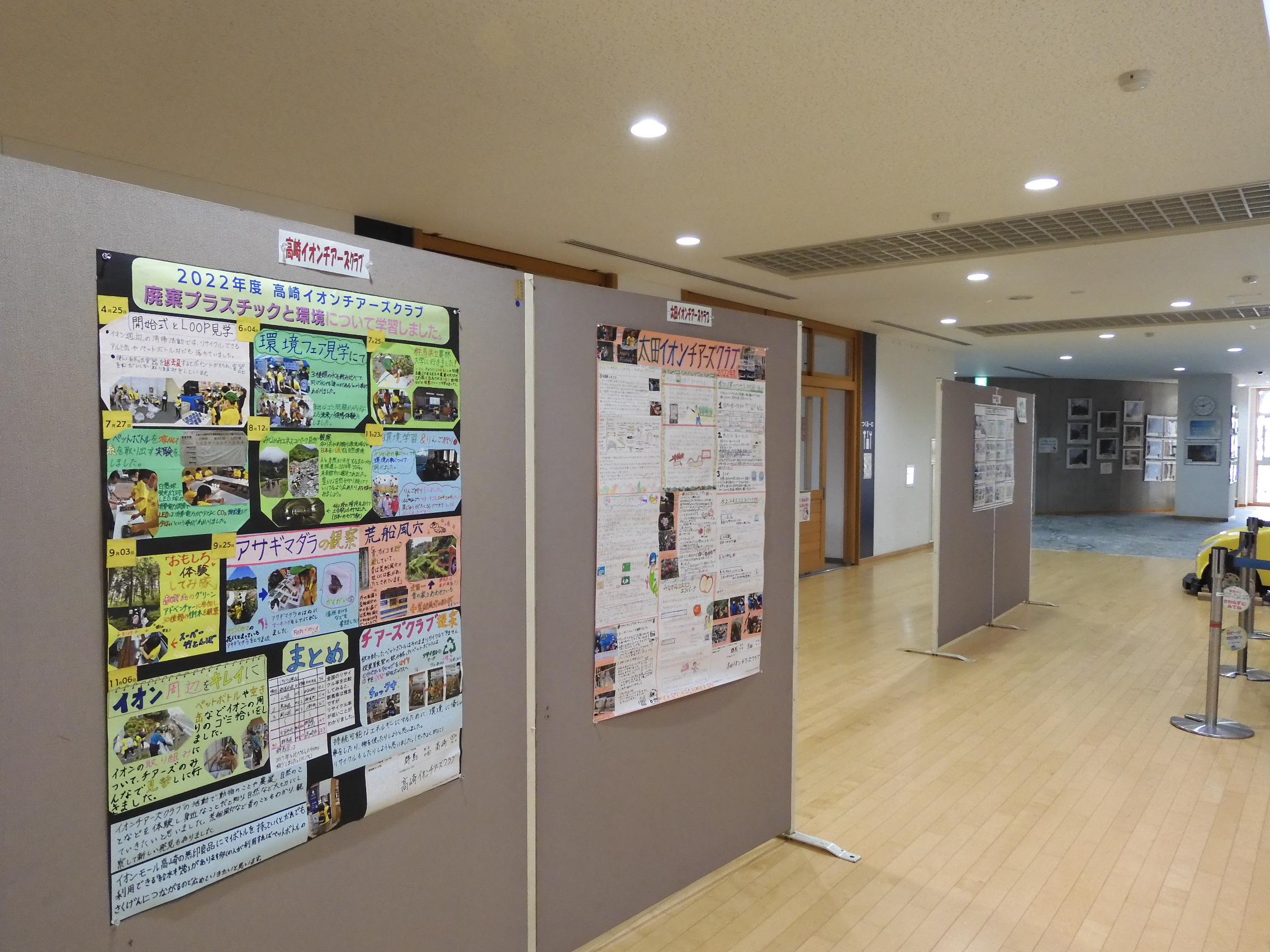 あかぎネイチャーサイエンスクラブ、チャウスこどもエコクラブ、高崎イオンチャーズクラブ、太田イオンチアーズクラブ、前橋市児童文化センター冒険探検隊、館林市立第四小学校の6団体の壁新聞を展示しました。壁新聞は、「全国エコ活コンクール」の壁新聞部門に応募しました。各クラブとも素晴らしい内容でした。