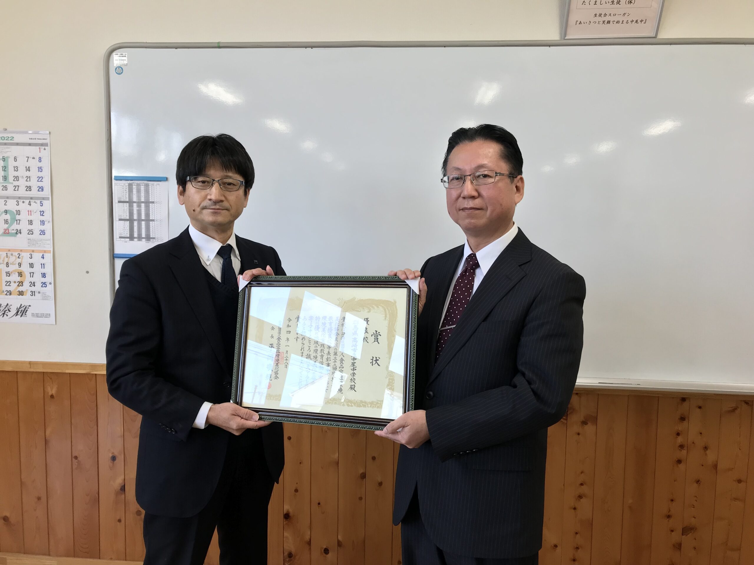 公益社団法人食品容器環境美化協会主催の表記表彰事業において、本県から推薦した高崎市立中尾中学校が「優良校 協会会長賞」を受賞し、2022年2月3日(木曜日)に表彰伝達式が行われました。